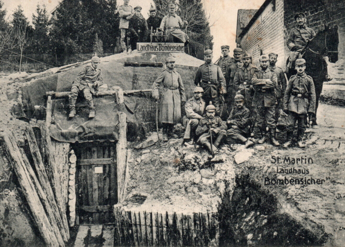 WWI German Soldiers Bunker Trench Postcard