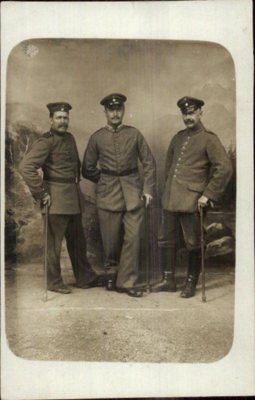 WWI German Soldiers Pose w/ Walking Canes Munchen Cancel c1916 RPPC
