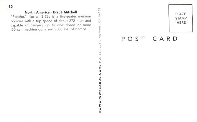 WWII Bomber Pancho. North American B-25J Mitchell. Standard sized chrome card. Excellent condition.