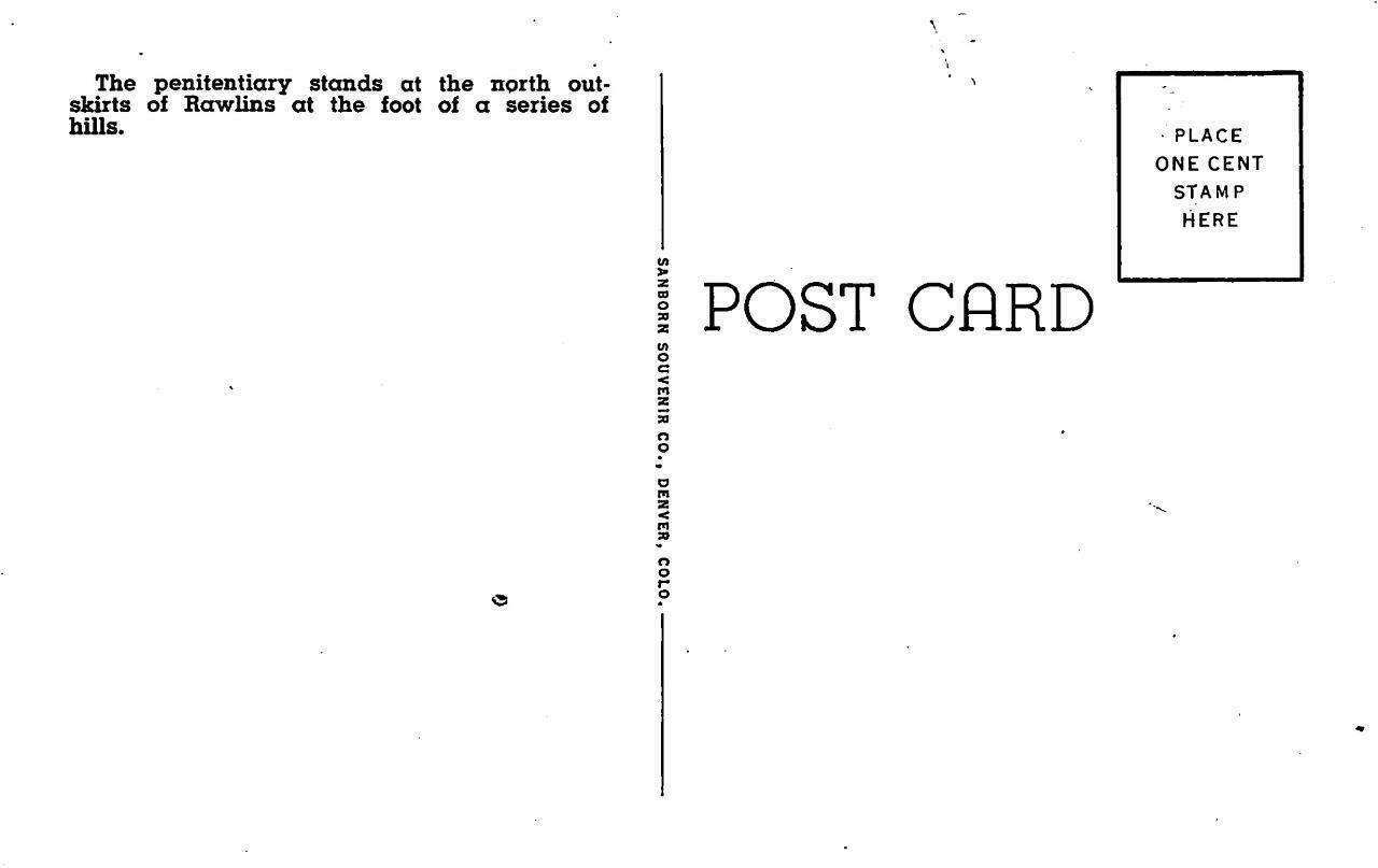 Linen postcard. WY, Rawlins WYOMING STATE PENITENTIARY~Prison & Water Tower c1940's Postcard WY, Rawlins WYOMING STATE PENITENTIARY~Prison & Water Tower c1940's Postcard Click images to enlarge Description Linen postcard. Please note that if in the image of the postcard back, an odd colored shadow appears on one side, it is a scanner defect and it does not appear on the card. Item is described as accurately as possible. Please View My Other Items For Sale and be sure to Add me to your Favorite Sellers. Please be sure to Visit My Hip Store, new items are listed every week. Please don't hesitate to send me a question, before or after your purchase. I want to make sure your experience is a positive one, and will respond promptly to all inquiries. Unless stated in listing, I only sell standard size vintage postcards, shipped typically within 24 hours, in a cardboard stiffened envelope. I offer a full refund if you are unhappy with your purchase, so please buy with confidence. Images sell!Get Supersized Images & Free Image HostingCreate your brand with Auctiva'sCustomizable Templates.Attention Sellers - Get TemplatesImage Hosting, Scheduling at Auctiva.com.Track Page Views WithAuctiva's FREE Counter