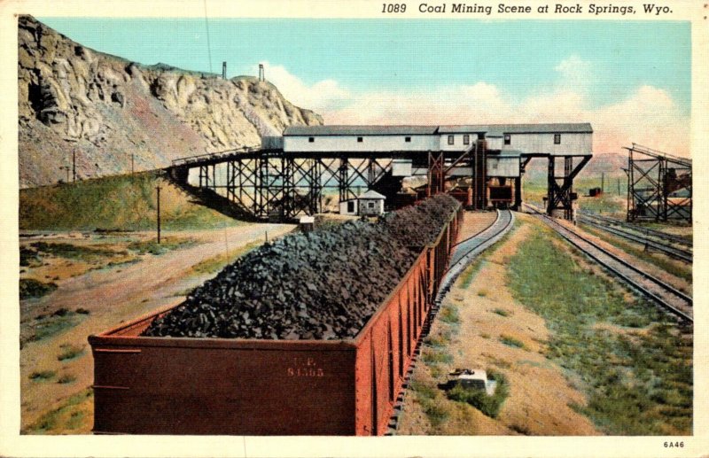 Wyoming Rock Springs Coal Mining Scene Curteich