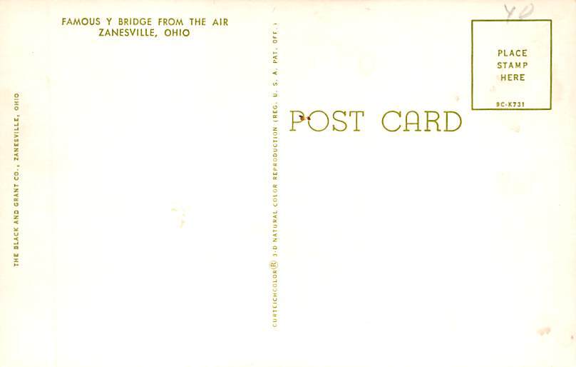 Y Bridge Zanesville, Ohio OH Postcard - Unused Grade: 1 Size: R - Regular Size Postcard - approximately 3 1/2 inch x 5 1/2 inch (9 CM x 14 CM) Grading Scale: Grade 1 = Perfect corners Grade 2 = Very Minimal cor ... Read More