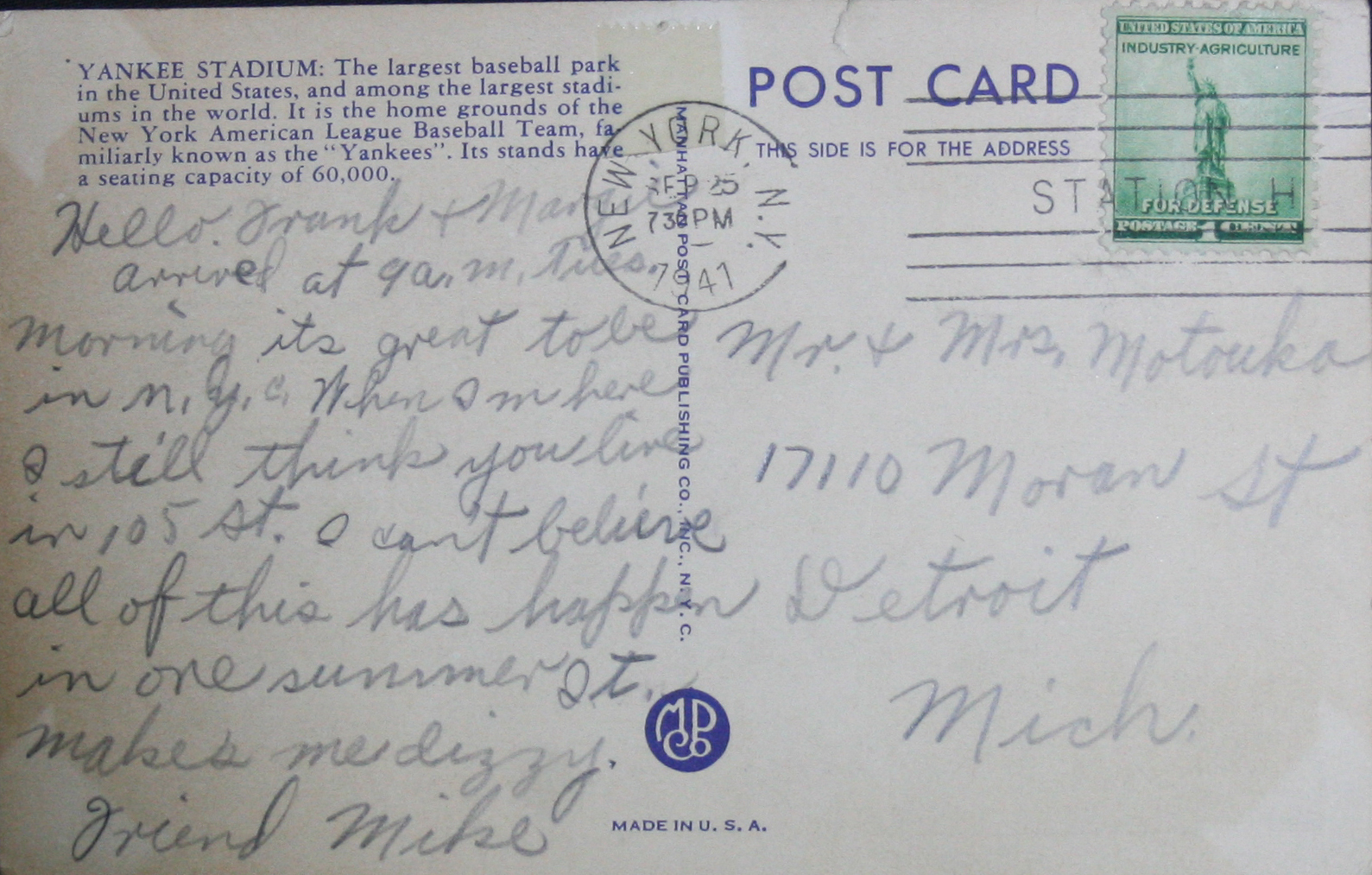 Postmarked Sept. 25, 1941Seller Information