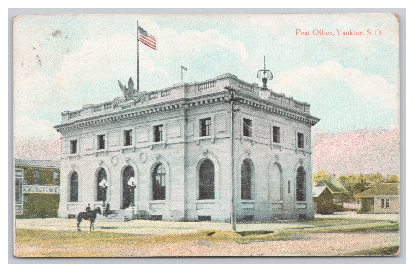 Condition: Mailed, Showing Wear From Handling. Writing On The Back. Reasonable Offers Always Considered. Yankton S. D. South Dakota Post Office Postcard c1909