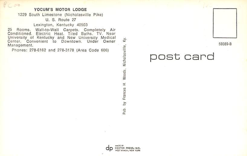 Yocum's Motor Lodge Lexington KY Postcard - Unused