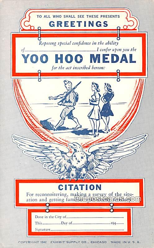 Yoo Hoo Medal Military Comic Postcard Unused,