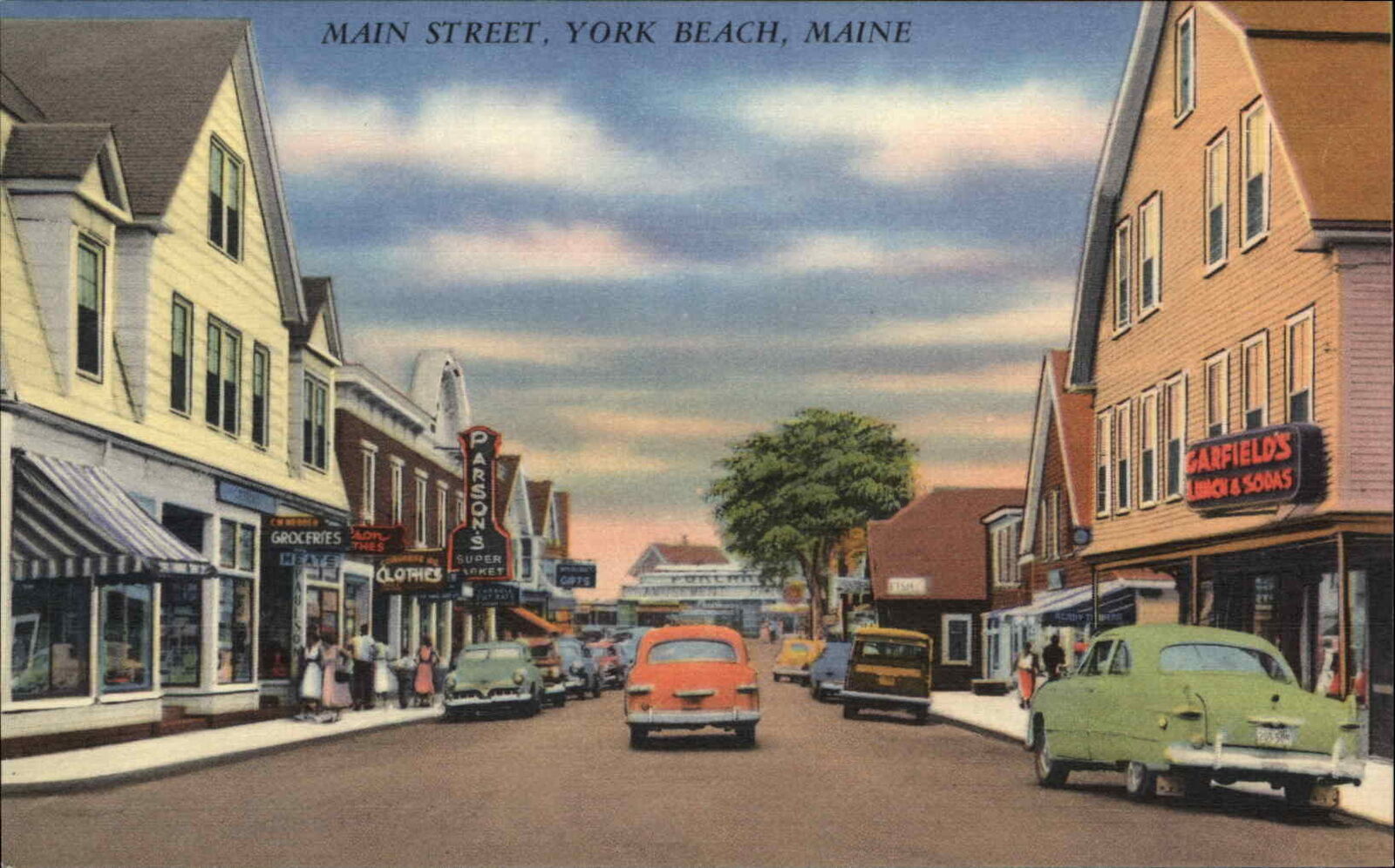 York Beach Maine ME Main St. c1940s Linen Postcard
