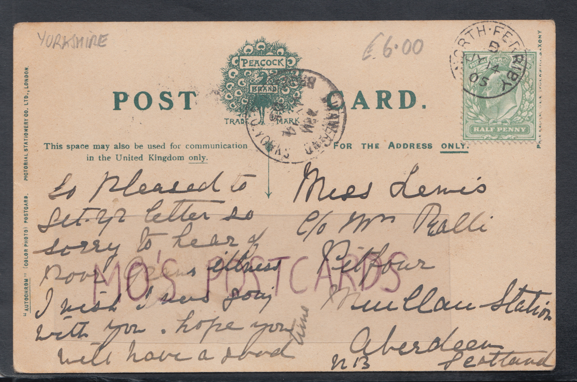 Mo's Postcards Postcard Description: Yorkshire Postcard - Cottingham, Near Hull - Hallgate Genealogy Information: MISS LEWIS, C/O MR RALLI, PITFOUR, M??LLAN STATION, ABERDEEN, SCOTLAND Defect(s): CREASING ... Read More