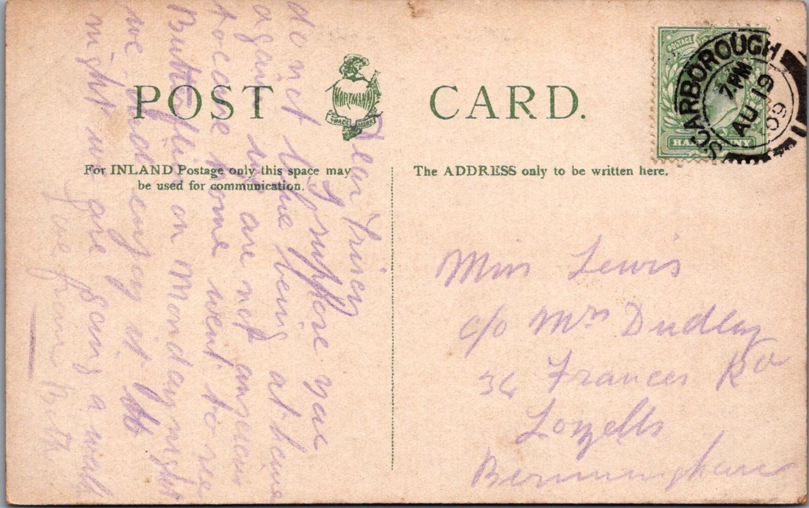 Yorkshire Postcard - The Lighthouse, Scarborough XT225Publisher: Hartmann Postcard size: Standard. Posted in 1909 Postcard defect(s): Slight wear at the top edge Please also use the image magnifier to make your own assessment on the condition. Please ignore any lines caused by the scanner.When possible all of our postcards will be posted to you inside a collectable plastic postcard sleeve and a board backed envelope which will be marked 'Please do not bend'.Any 'Mo's Postcards' watermark does not appear on the actual postcard'.