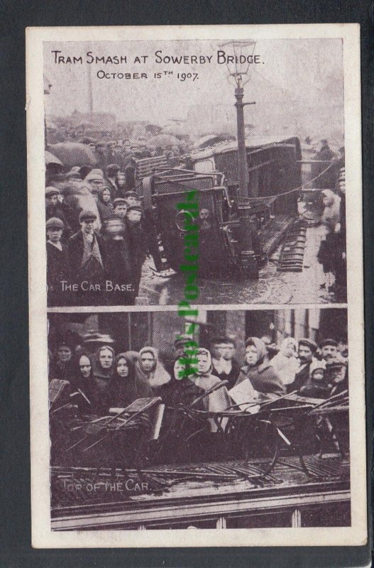 Postcard showing The Tram Smash at Sowerby Bridge, YorkshireMo's Postcards offers for sale a postcard showing The Tram Smash at Sowerby Bridge, Yorkshire on the 15th October 1907.Standard size postcard. Very very mi ... Read More
