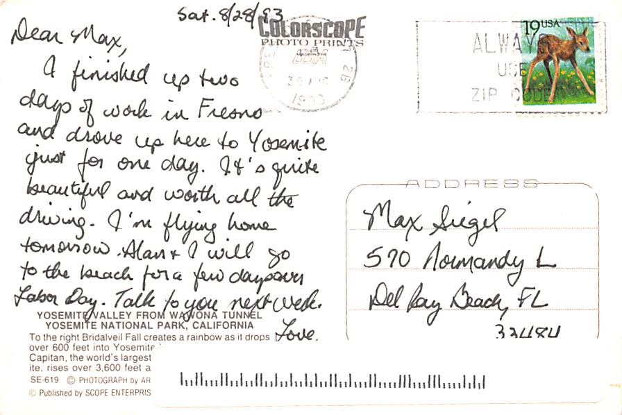 Yosemite National Park - California Grade: 5 - big crease Category: Continental Size Postcard, Approx 4 in x 6 in (10 cm x 15.25 cm) Product Size: Continental size: 4X6 inches (10.5 cm x 15 cm) Grading Scale: ... Read More