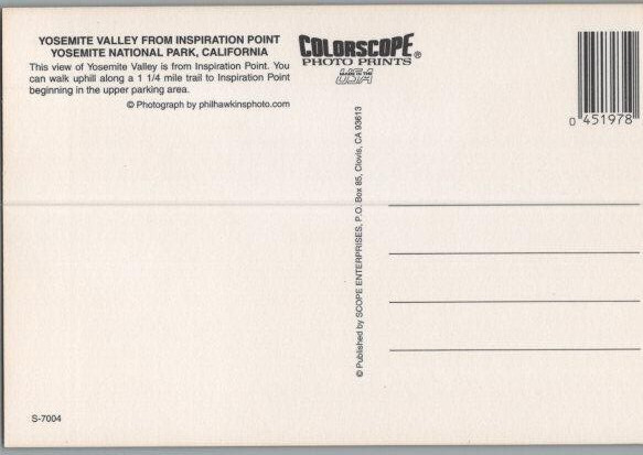 Yosemite Valley from Inspiration Point CA Continental Chome Postcard