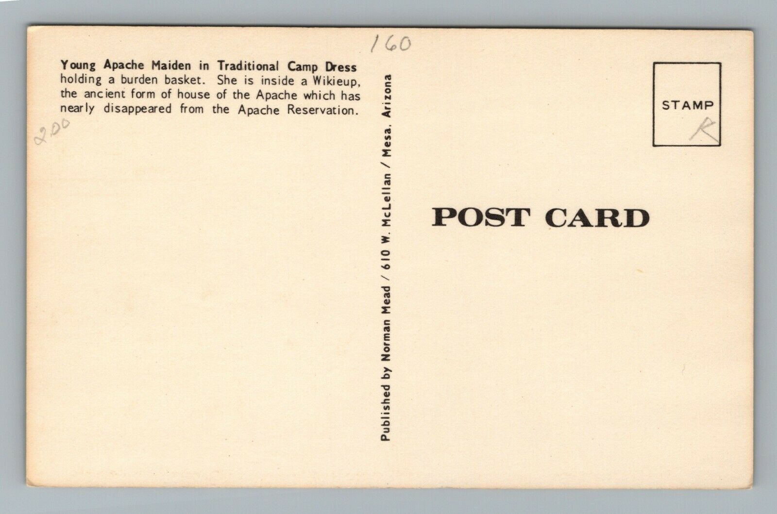 Young Apache Maiden Camp Dress Native Americans Vintage Postcard