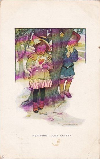 Young Couple Her First Love Letter 1915