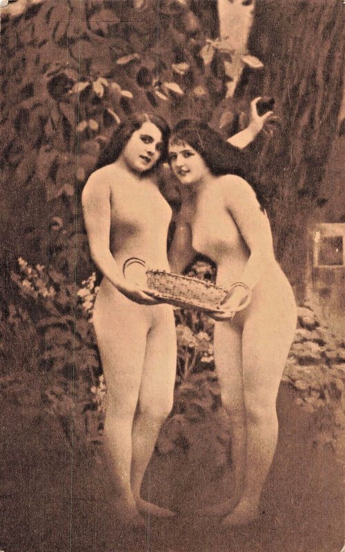 Young Girls-Risque Sheer Body Suit Picking Fruit Studio Image~Reg. Postcard Size