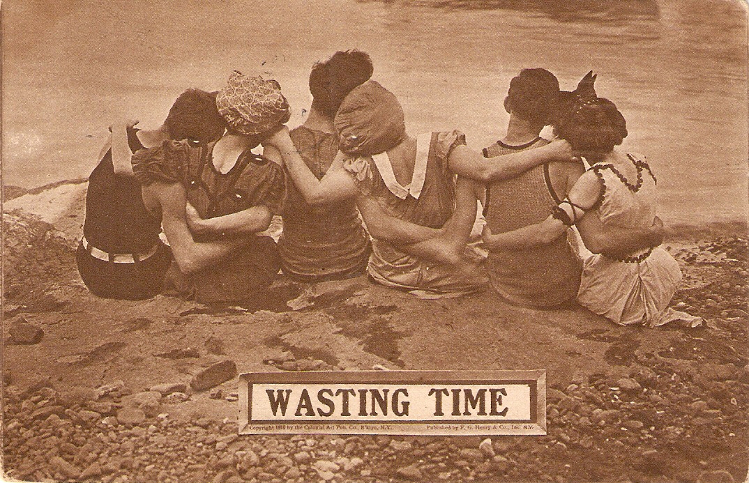 "Ypoung couples. Wasting time" Nice old vintage postcard