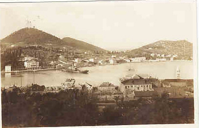 Real photo view of this Adriatic port with two vessels in the harbor. Sent from Dubrovnik March 1, 1930 to address in Endingham,