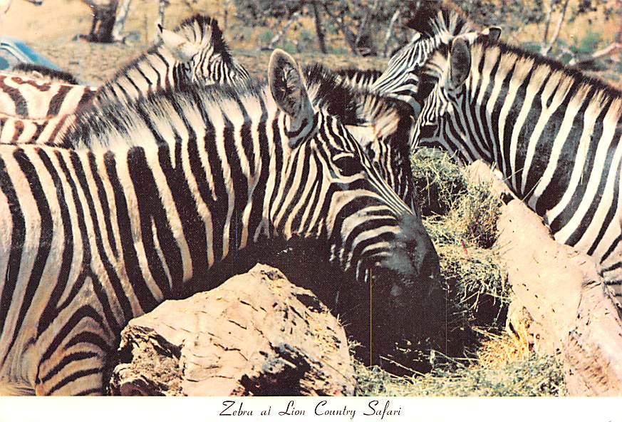 Zebra - Lion Country Safari Grade: 2 Category: Continental Size Postcard, Approx 4 in x 6 in (10 cm x 15.25 cm) Product Size: Continental size: 4X6 inches (10.5 cm x 15 cm) Grading Scale: Grade 1 = Perfect cor ... Read More