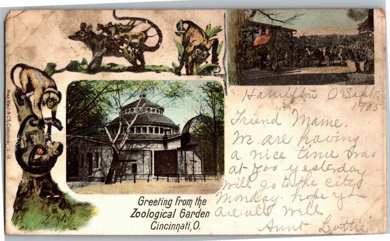Zoological Garden Cincinnati Ohio, Monkeys Multi View c1905 Vintage Postcard N11