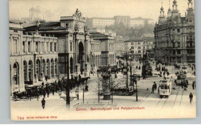 ZURICH SWITZERLAND Trolleys Street Scene c1905 Postcard
