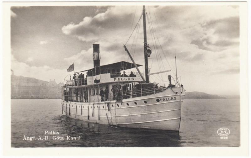 A vintage real photo postcard of the ship _Pallas_ on the Göta canal in Sweden.