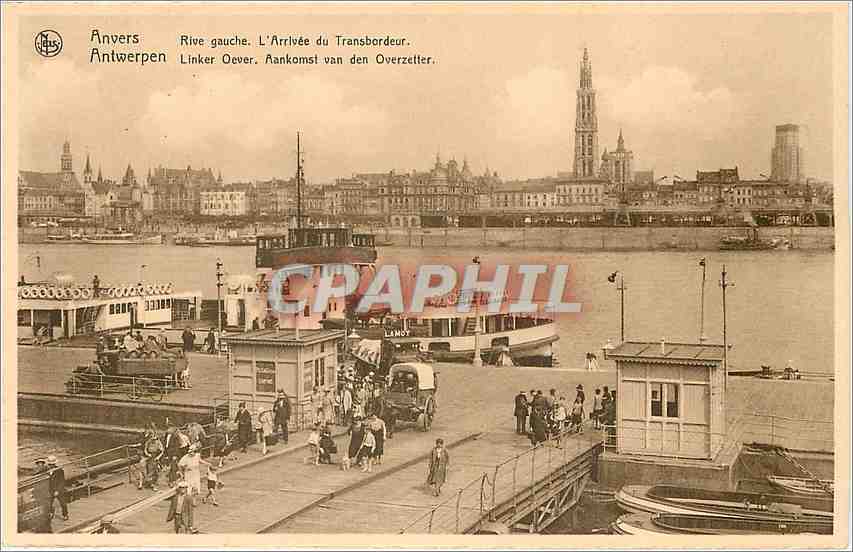 Old Postcard Antwerp Left Bank. The Arriv�e the Boat Transporter