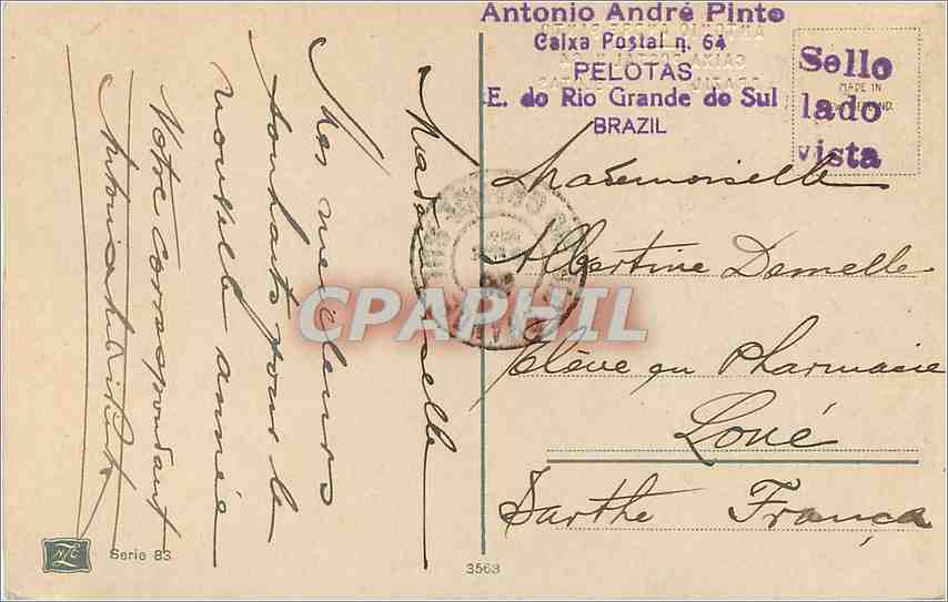 Postcard Old Ant�nio Andr� Pint Caixa Postal Pelotas Rio Grande de Sul Brazil