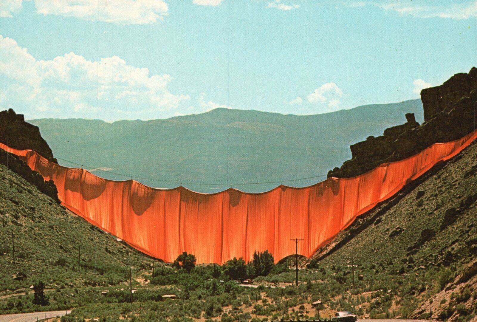 Vintage postcard christo valley curtain film center colorado state university co