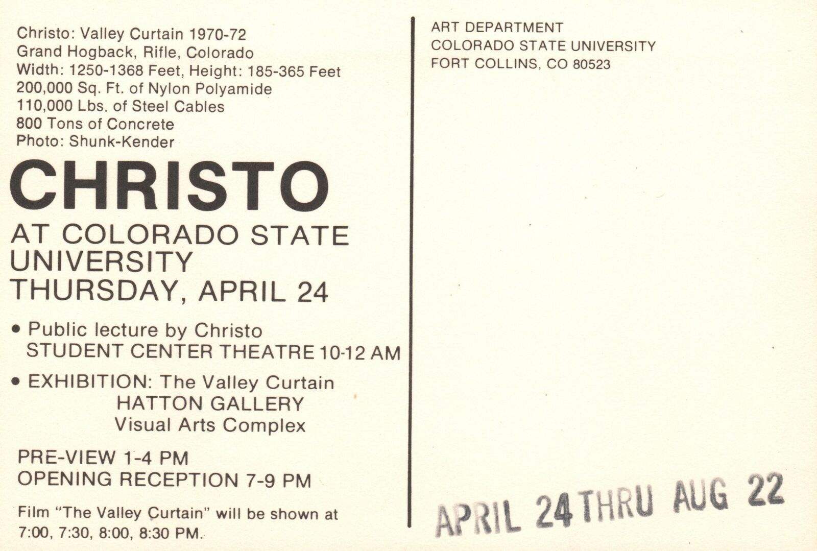 Vintage Postcard Christo Valley Curtain Film Center Colorado State University