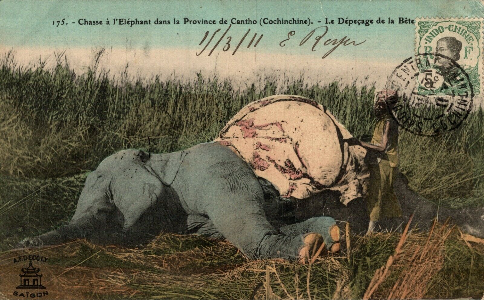 Vietnam Elephant hunting in Cantho Cochinchina Can Tho Cần Thơ Postcard 08.52