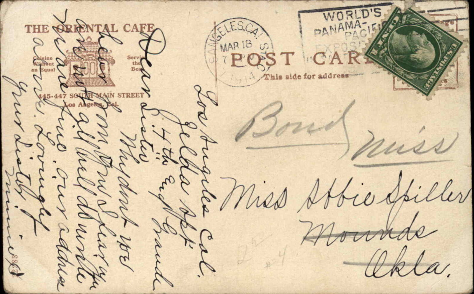 Los Angeles California CA The Oriental Caf� Interior c1910 Vintage Postcard