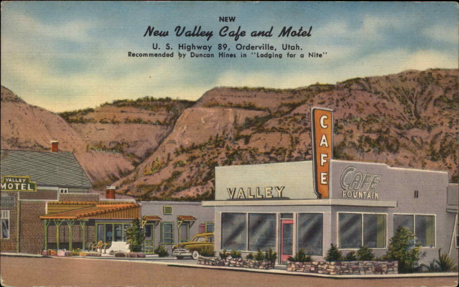 Orderville Utah UT New Valley Caf� and Motel Linen Vintage Postcard