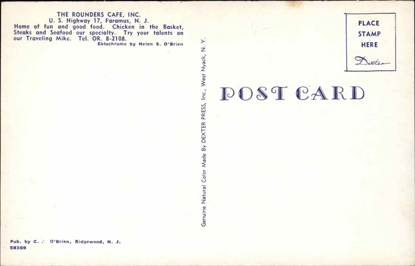 Paramus New Jersey NJ Rounders Caf� Inc Vintage Postcard