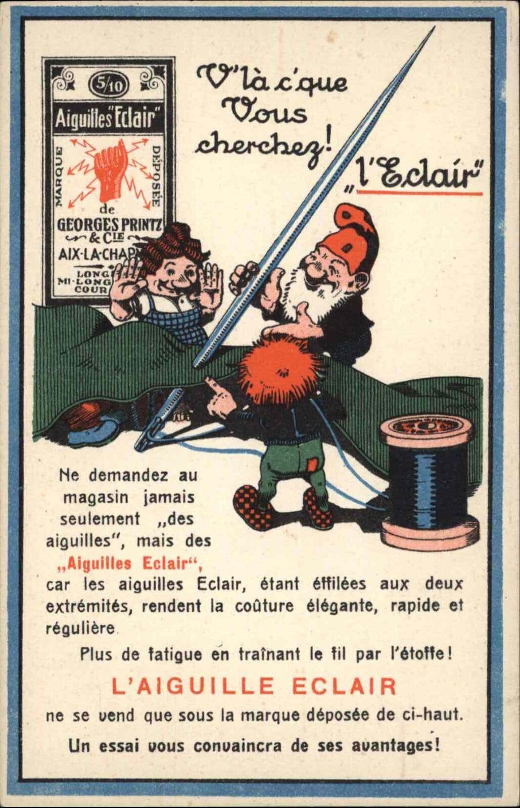 FRENCH SEWING AD ADVERTISING �clair Needles Gnomes Fantasy Ad Postcard