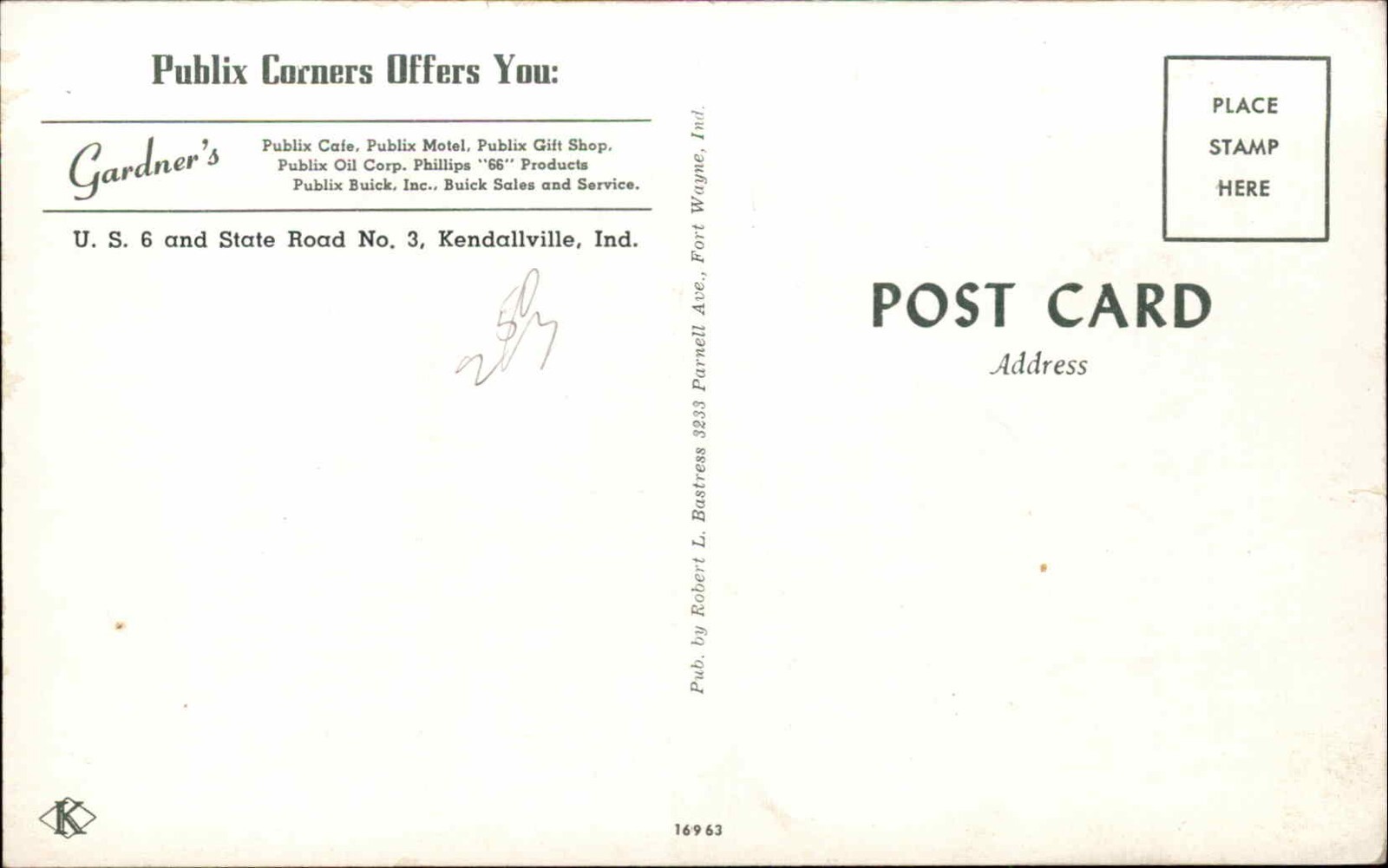 Kendallville Indiana IN Publix Corners Motel Caf� 1950s-60s Vintage Postcard