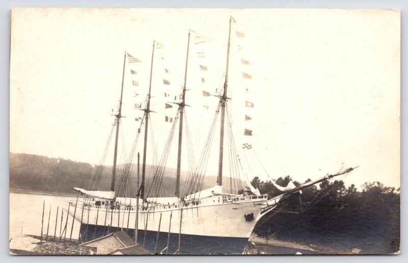 South Orrington~4-Mast Schooner James E Coburn~Boston & Penobscot Shipyard RPPC
